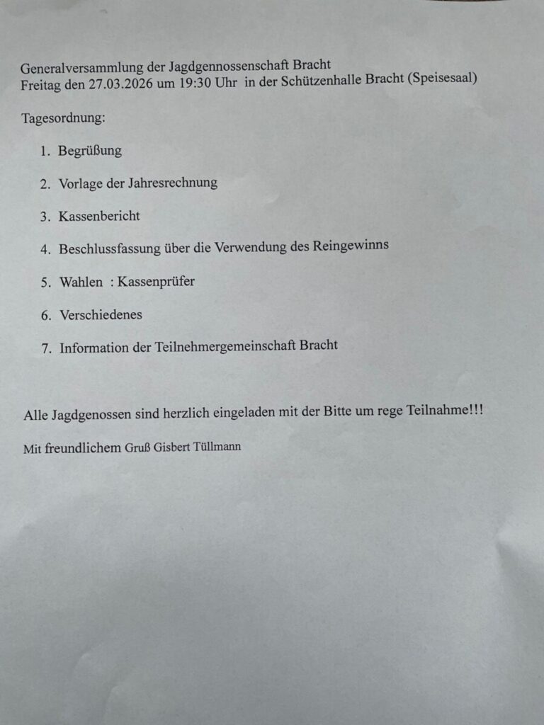 Generalversammlung der Jagdgenossenschaft Bracht